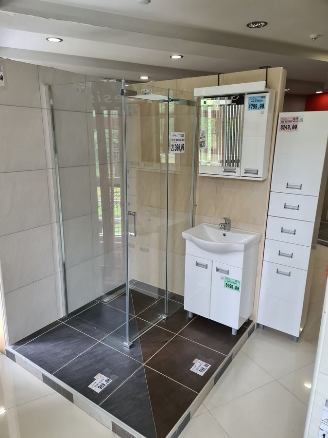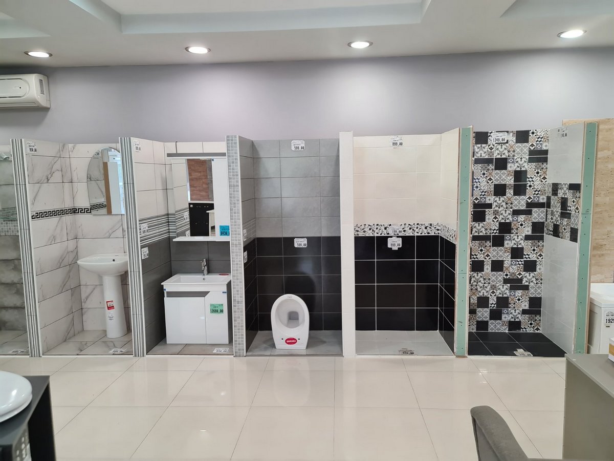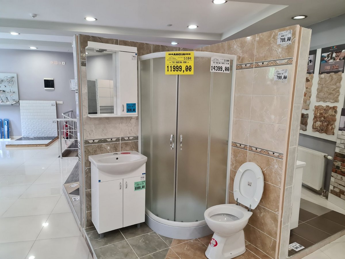 Na 150 m2 moderno opremljenog prostora je izložen aktuelni program kupatilske keramike, sanitarija, slavina, tuševa, vodokotlića, bojlera kao i najnoviji program kupatilskog nameštaja.